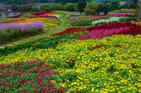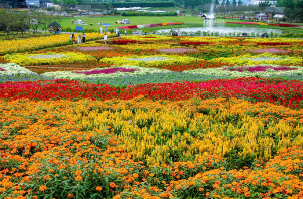 “我們今年的多個(gè)花田各有特色,其中,濱湖花田位于園區(qū)花田核心區(qū),由大小不一的三個(gè)花坡組成。富陽(yáng)花田位于濱湖花田北側(cè),由4大片向日葵組成。七彩花田緊鄰中心水池,與豐盛花田構(gòu)成連綿起伏的鮮花波浪,繁復(fù)和單色在一片花田里形成視覺沖擊,鮮花美景將在這個(gè)秋季展現(xiàn)。”伏熱花海相關(guān)負(fù)責(zé)人表示,還有由萬壽菊、雞冠花、千日紅、墨西哥鼠尾草和粉黛亂子草組成的豐盛花田;由花園菊、地膚草、波斯菊、向日葵組成的半夏花田。“值得一提的是,今年我們還加入了幾何圖形設(shè)計(jì),由5片幾何切割的花田組成‘星空花田’,驚艷游客的雙眼。”