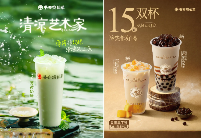 現(xiàn)泡茉莉綠茶搭配HPP新鮮夏黑葡萄汁和健康純牛乳,口感清爽不膩,吸一口果香、茶香、奶香三重清香,這就是新中式茶飲品牌書亦燒仙草推出的果茶新品——葡萄茉莉奶綠。葡萄茉莉奶綠因其清新的口感,過硬的品質(zhì),售價(jià)10元的超高性價(jià)比,一經(jīng)上市便收獲了近150萬杯的銷量與90%好評(píng)率口碑的“雙豐收”。經(jīng)典熱銷產(chǎn)品茉莉奶綠和薄荷奶綠,清新的茉莉綠茶風(fēng)味為整杯主基調(diào),搭配醇香真牛乳,茶香與奶香結(jié)合,輕盈的口感與今年“熱力十足”的國慶假期高溫天氣適配度拉滿,同時(shí)8元一杯讓的售價(jià)讓消費(fèi)者感覺超值,也將“好奶好料”的產(chǎn)品心智進(jìn)一步植入消費(fèi)者心中。