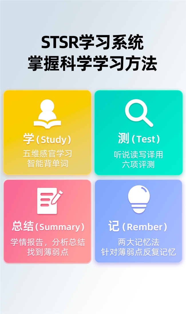 手表內(nèi)置 “學(xué)習(xí)屏保、每日一語(yǔ)、每日單詞” 功能,課間可快速記一個(gè)新單詞,放學(xué)路上能跟讀一句日常對(duì)話,將零散時(shí)間轉(zhuǎn)化為 “微學(xué)習(xí)” 時(shí)段,有效避免 “假期后學(xué)習(xí)斷層”。針對(duì)不同年級(jí)孩子的英語(yǔ)水平,其搭載的 STSR 學(xué)習(xí)系統(tǒng)通過(guò) “學(xué)(Study)- 測(cè)(Test)- 記(Remember)- 總結(jié)(Summary)” 四步流程,從聽(tīng)、說(shuō)、讀、寫、譯、用六個(gè)維度鞏固英語(yǔ)能力,完美銜接返校后的課堂教學(xué)進(jìn)度,幫助孩子快速找回學(xué)習(xí)節(jié)奏。