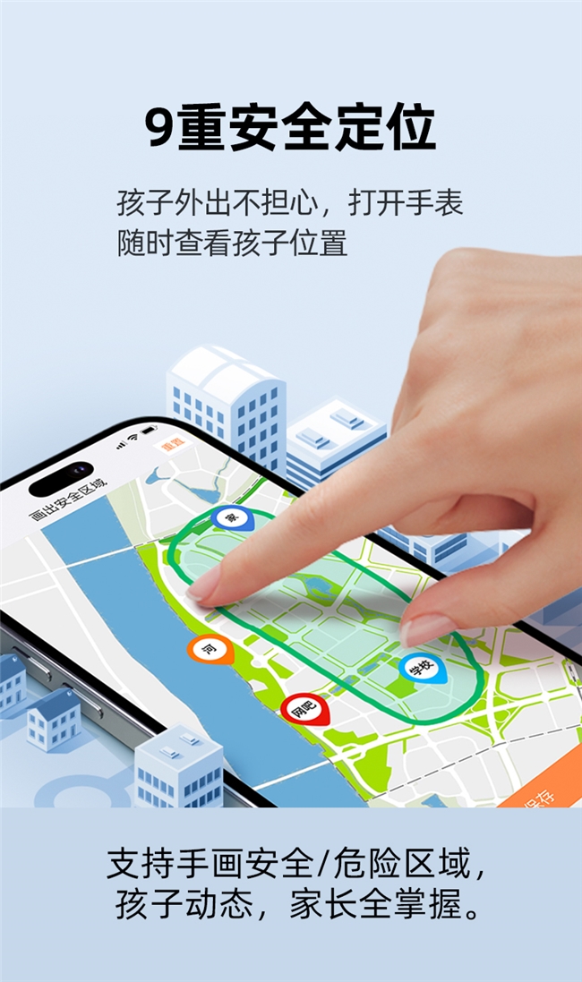 手表支持九重 AI 定位與軌跡追蹤,家長(zhǎng)通過(guò)手機(jī) APP,無(wú)論是孩子早上上學(xué)途中、還是下午放學(xué)路上、周末外出游玩,都能實(shí)時(shí)查看孩子的精準(zhǔn)位置;更可追溯 90 天內(nèi)的行動(dòng)軌跡,回溯孩子的出行記錄,全方位把控安全動(dòng)態(tài)。