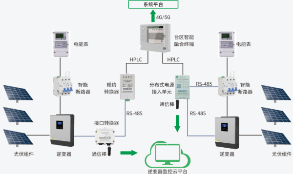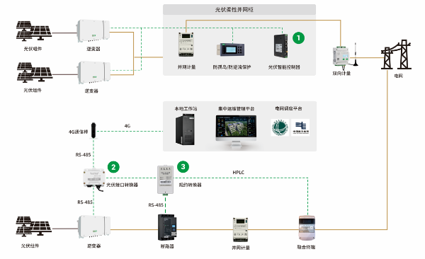 可調可控:核心在于調節(jié)光伏的功率以及可以對并網(wǎng)開關分合閘。通過規(guī)約轉換器或分布式光伏智能控制裝置可以遠程對逆變器下發(fā)功率調節(jié)的指令,實現(xiàn)電站的功率控制,維持電網(wǎng)的安全穩(wěn)定。